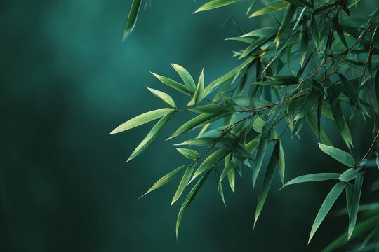 Featuring soft bamboo leaves in a deep pastel green wallpaper background that evokes tranquility and nature's beauty in an elegant setting