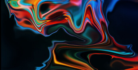 Glowing blue mesh on multicolored abstract waves