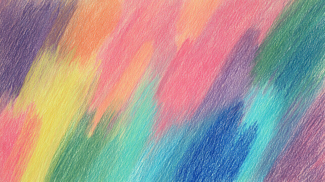 Abstract pastel background, colorful crayon texture, soft rainbow pattern, gentle tone, childlike art, vibrant stroke, dreamy mood