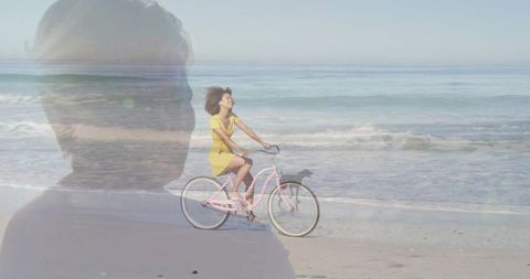 Smiling woman with pastel pink hair glowing skin and ethereal glitter particles