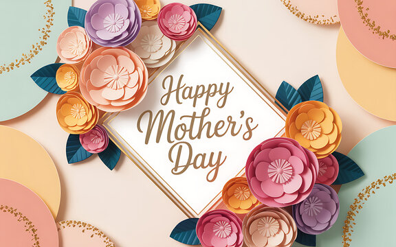 Cute animated beautiful lady in floral dress on pastel backdrop