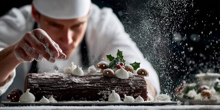 The Pastry Chef Dusting a Yule Log
