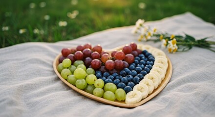 Outdoor Picnic Heart Fruit Platter with Berries and Bananas