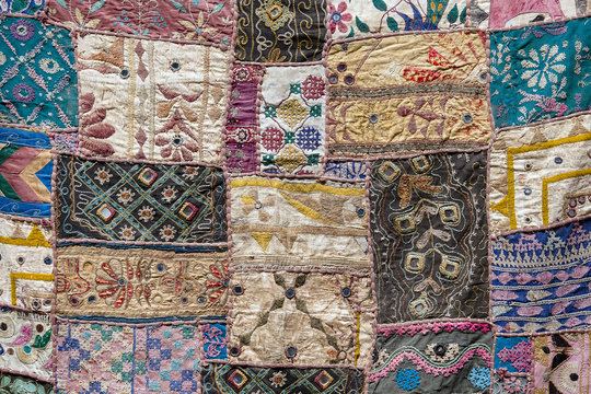 Detail of a old patchwork carpet