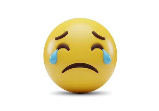 Sad stone figurine with drawn crying face and tear drops.