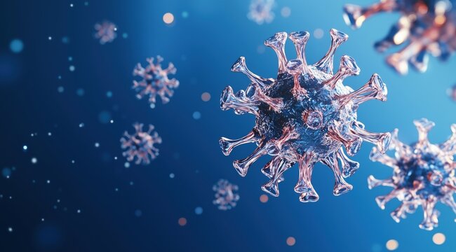 Visual representation of viral structures in a detailed and colorful environment illustrating pathogen characteristics