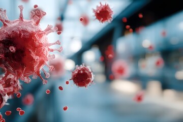 Visual representation of flu virus particles in the air, detailed