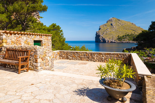 Beautiful Summer Staged Deck with Nature Woods and a Flower Pot and Privacy Screen