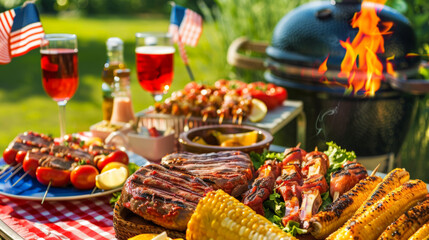 Festive Fourth of July Barbecue Flat Lay with American Flag Accents