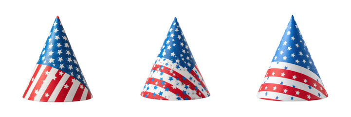 Colorful Party Hats with American Flag Design for Celebrations Isolated on a Transparent Background