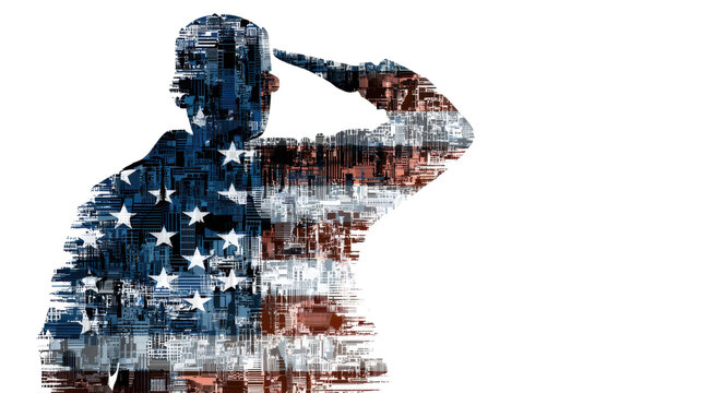 Patriotic silhouette with financial data background