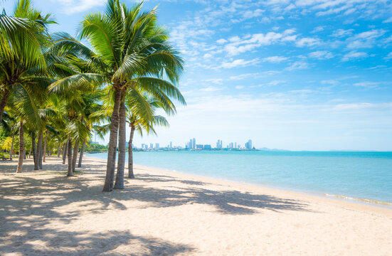 summer at pattaya beach On a hot day and in the shade of the coconut trees.