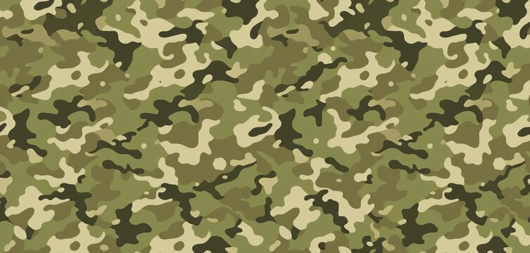 Abstract seamless camouflage pattern featuring muted greens, browns, and grays,  geometric,  digital