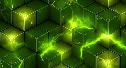 Vibrant green isometric cube pattern with glowing light effects for modern designs