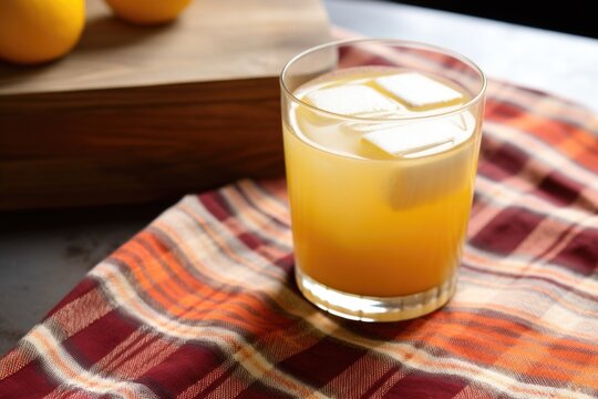 Delicious chicken sandwich with crinkle-cut fries on checkered napkin