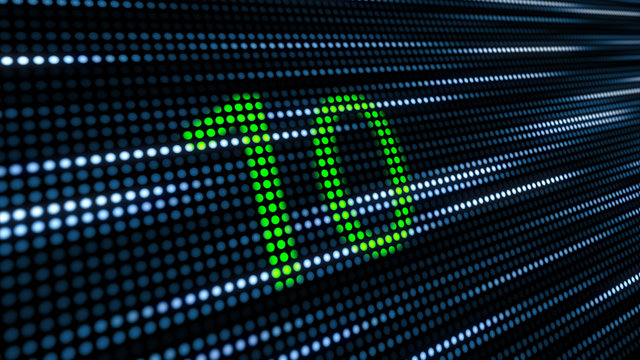 Retro digital countdown number ten on black background