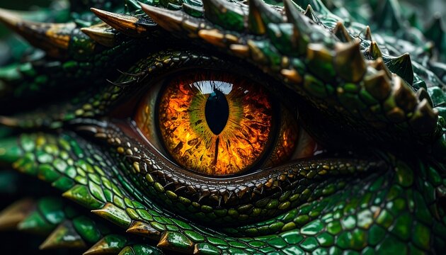 Close-up dragon eye, scales, and spikes