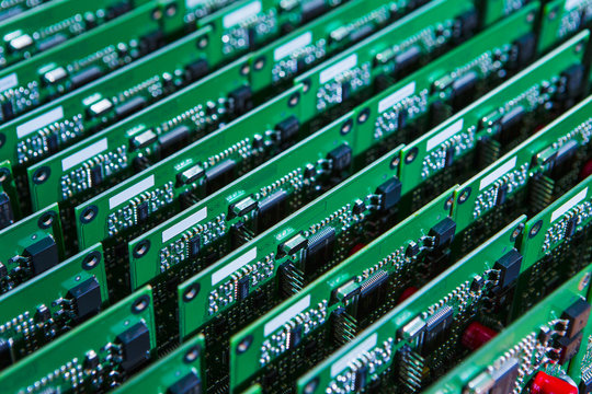 Electronics Concepts. Batch of Ready  Printed Circuit Boards with Surface Mounted Components.
