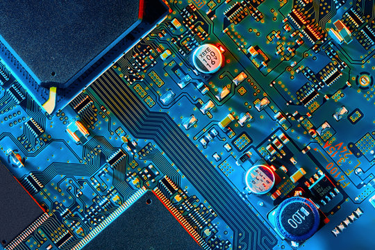Close-up view of modern circuit board with microchips