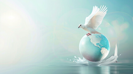 World Peace Day Banner with a bird is flying over a globe that has a flying dove on it, international day of peace concept. World peace day