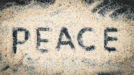 Top view of PEACE text written