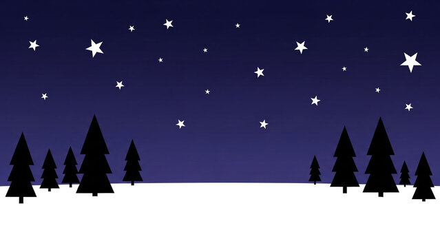Peaceful nativity scene with two figures kneeling by a baby in a manger inside a glowing stable under a bright star in a dark, misty night