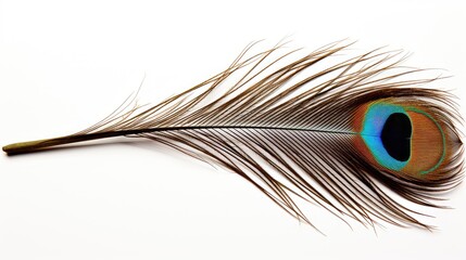 A close-up of a peacock feather, also known as a peafowl feather or bird feather.