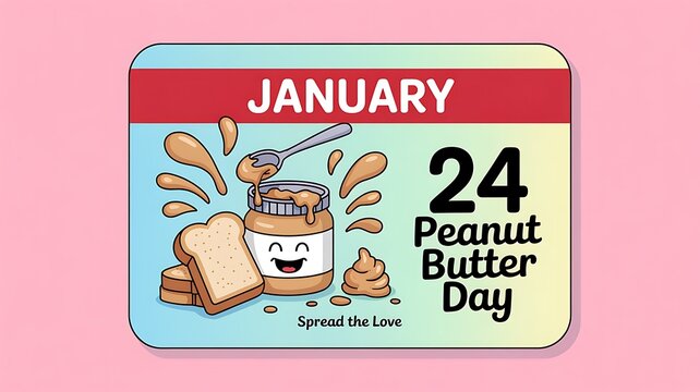 Cute January 24 Peanut Butter Day illustration with happy character jar and toast slices
