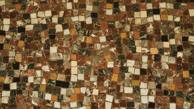 Small antique cracked brown beige white black mosaic tiles pattern background
