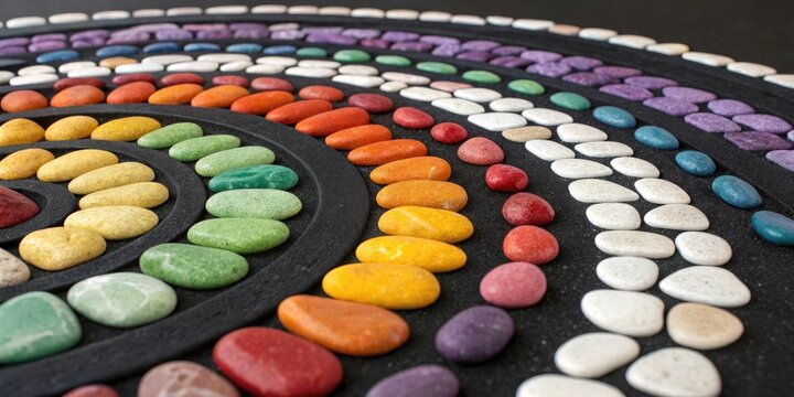 Colorful pebble mosaic rainbow spiral design