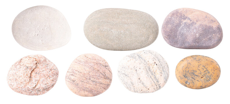 a rough and natural texture rocks of different sizes and shapes isolate on a white background