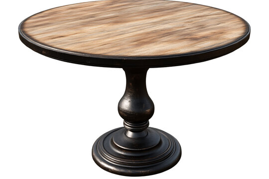 Modern round dining table with marble top and fluted pedestal base, isolated on transparent background