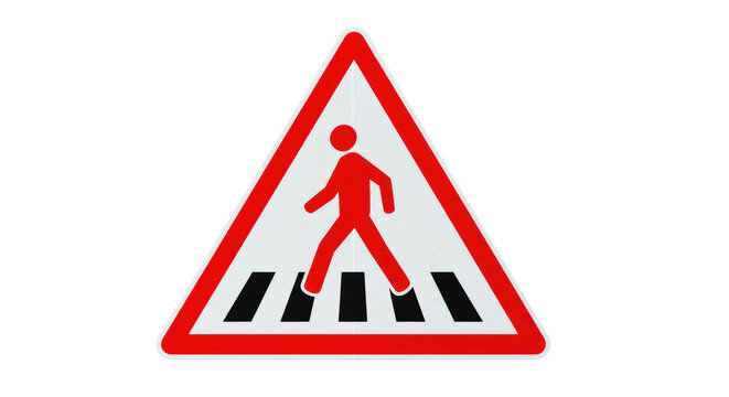 A pedestrian crossing sign on a plain black background