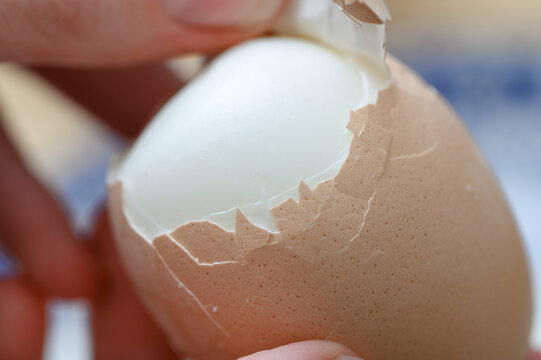 Peeling a hard-boiled egg from its shell