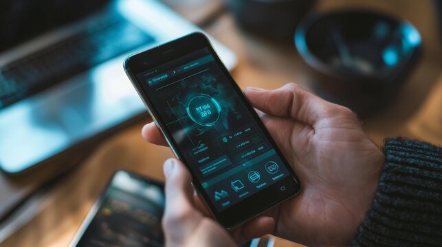 Mobile fintech app for peer to peer lending A smartphone displaying a peer-to-peer lending platform, with users lending and borrowing funds in a secure financial ecosystem
