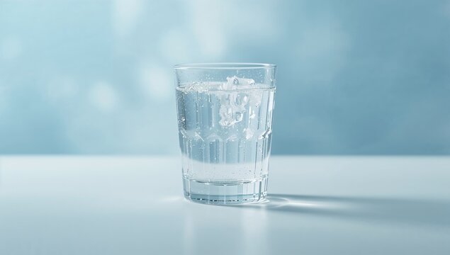 A glass of cold water on a table, emphasizing hydration and temperature control