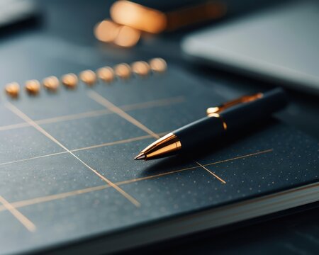 Journal and pen on wooden surface