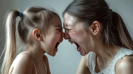 Mother at home correcting, disciplining her child for bad behavior