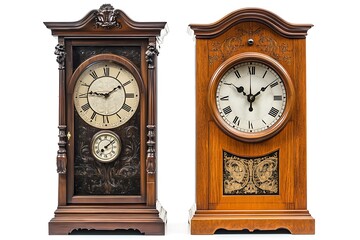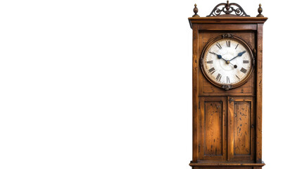 Elegant antique pendulum clock with a wooden background displaying vintage time