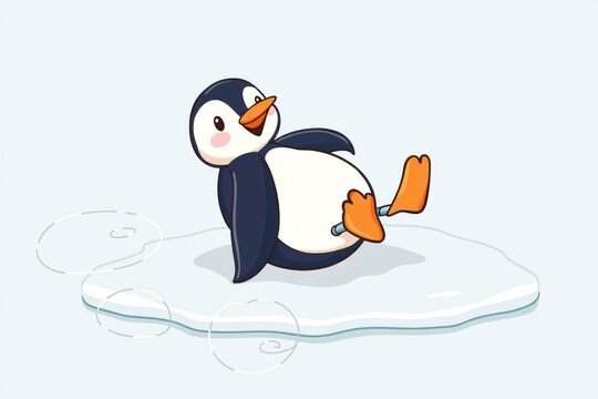 Cute cartoon penguin on a sled, vector illustration, funny animal, no fly, flying concept, adorable character, winter fun, arctic wildlife, animated style