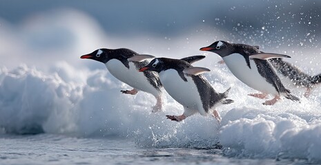 A chinstrap penguin family adventure, a playful trio of gentoo penguins on the glaciers.