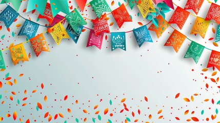 Hispanic heritage month background with mexican paper flags