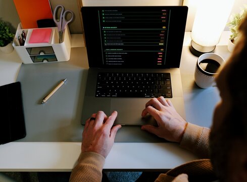Male Information Technology Security Engineer Running Through an Internal Penetration Test Checklist Web Form - Corporate Cybersecurity Concept