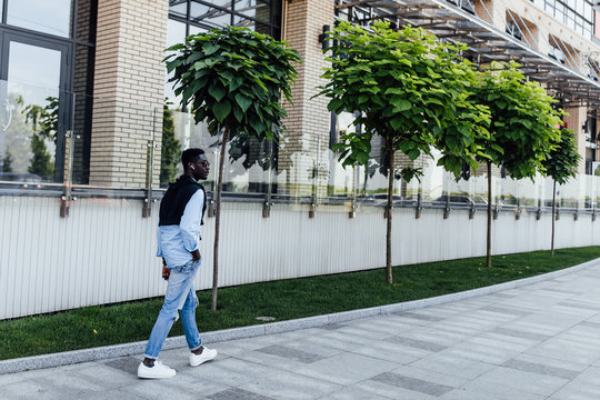 Portrait of handsome black guy standing with hands in pockets