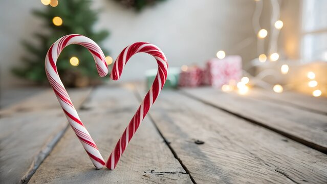 Candy cane heart shape on rustik background