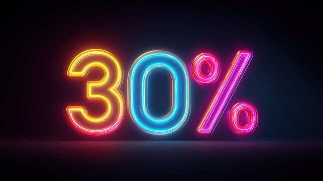 Glowing Neon Thirty Percent Sign Animation isolated on a transparent background image 2