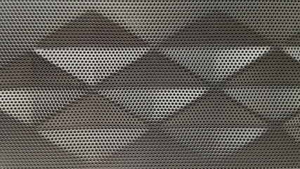 Perforated metal mesh panels on facade. Contemporary surface structure