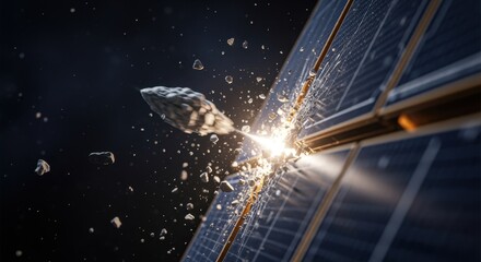Slowmotion capture of highspeed projectile piercing an orbital debris shielding panel illustrating the dynamics of hypervelocity collisions.