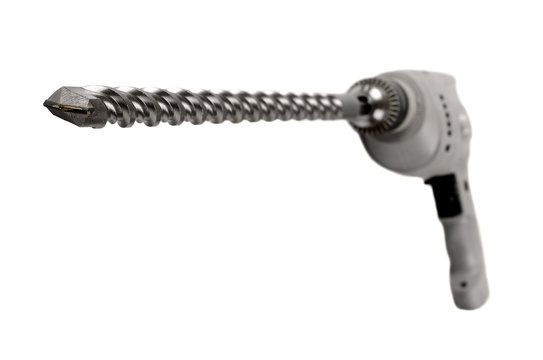 A professional tool for work, repair and construction in the store, isolated on white background. Sale of wired power tools and battery powered equipment in the shop