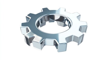 Shiny silver gear icon with a smooth finish, top view, rendered in 3D against a white background for a clean look.